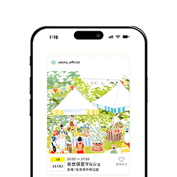 新商品や期間限定のセールの情報など地域のユーザーにお知らせしたい最新情報を、edahaの投稿機能を使っていつでも手軽に発信することができます。